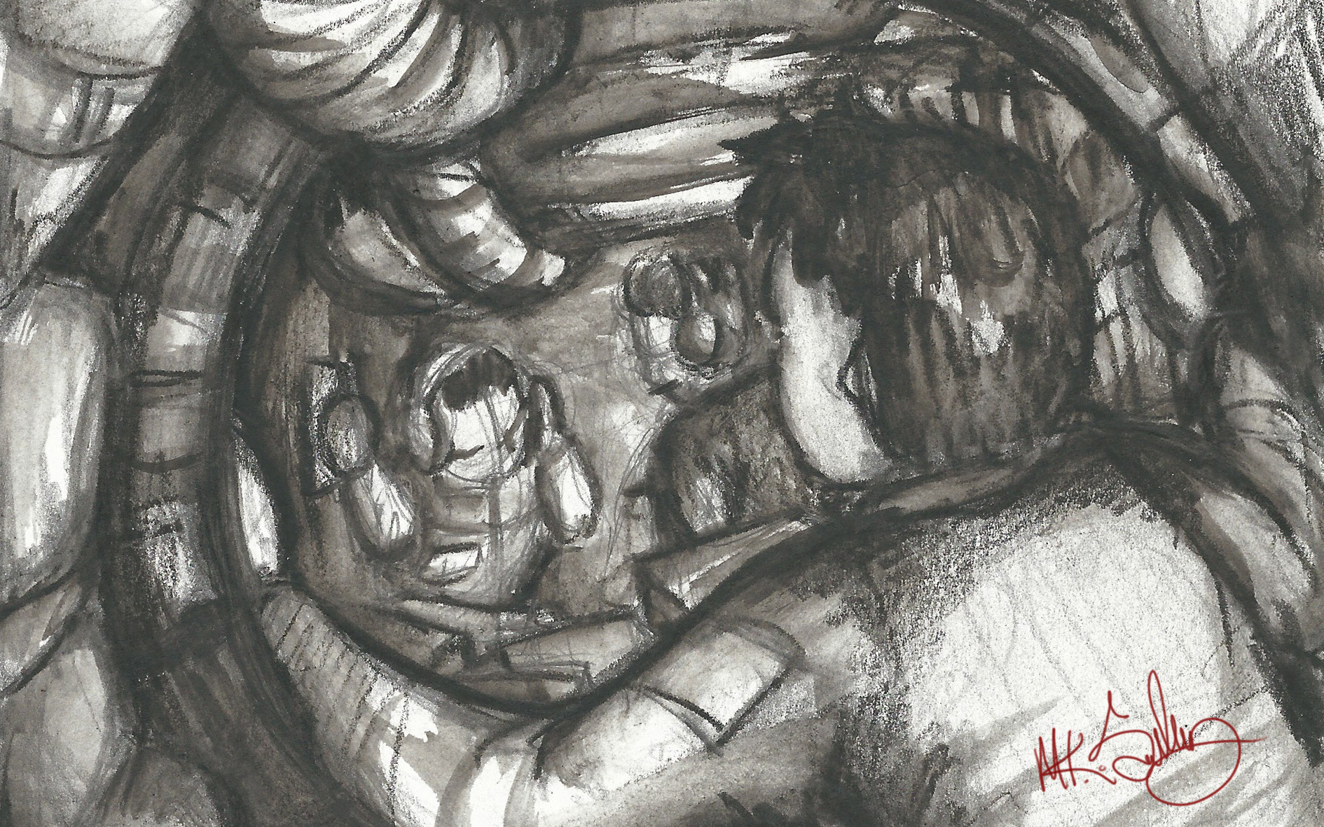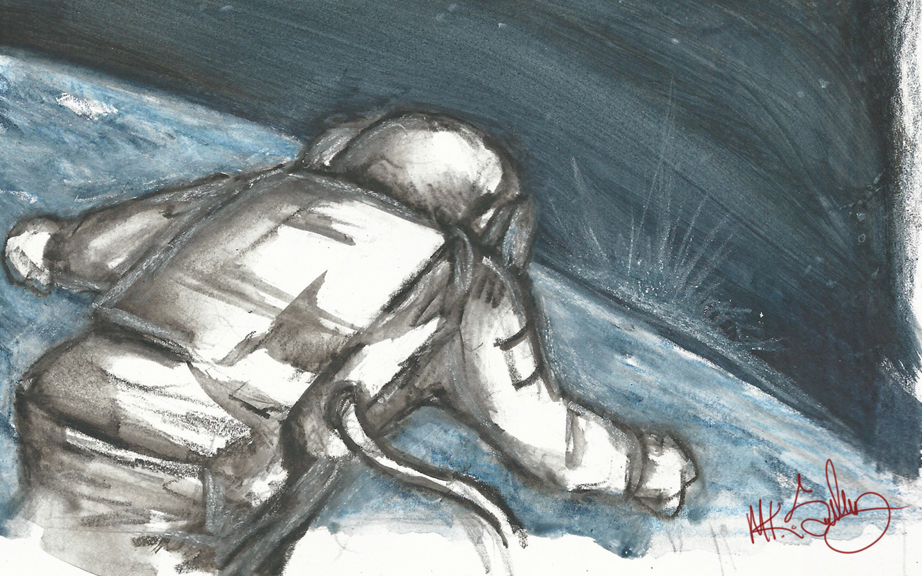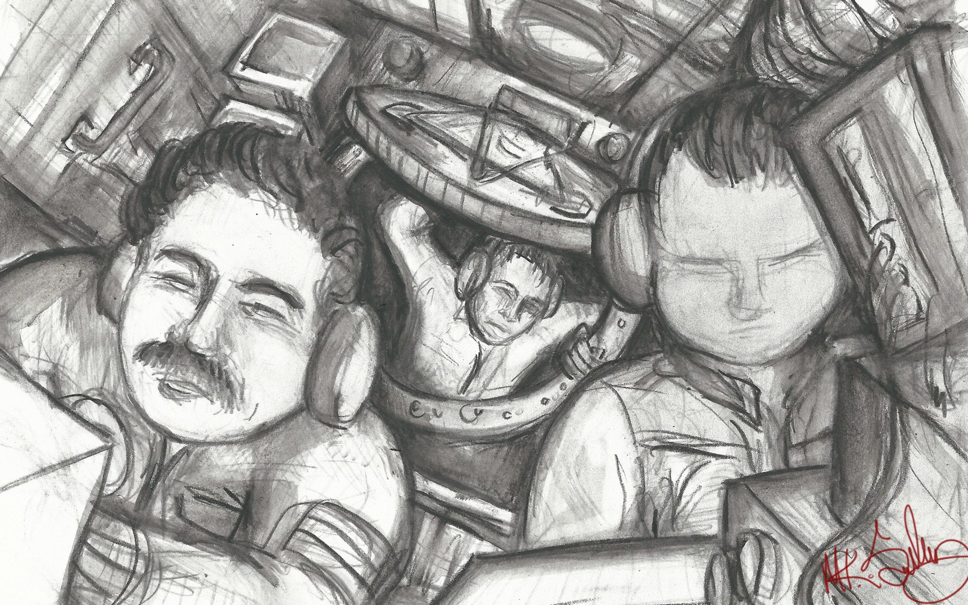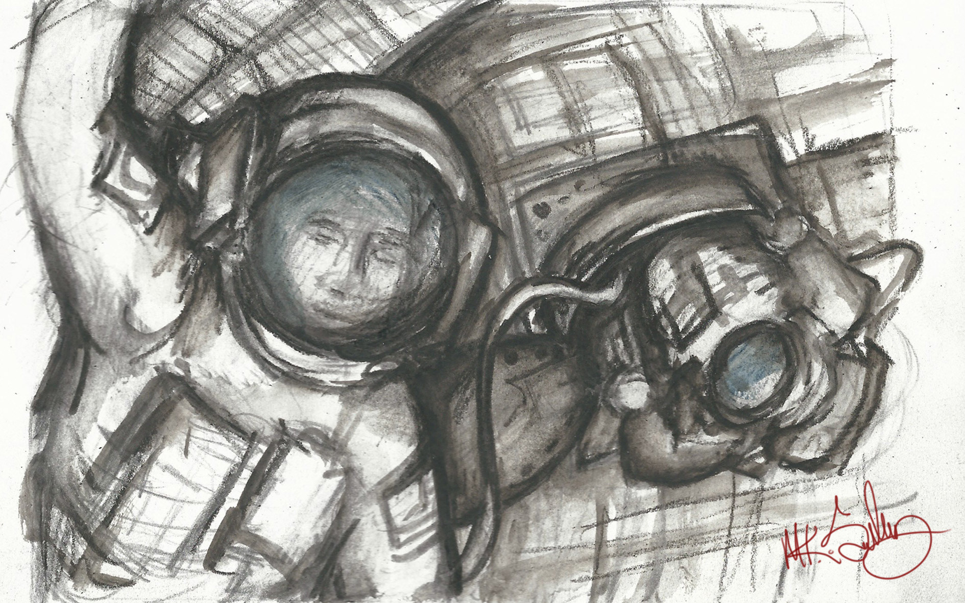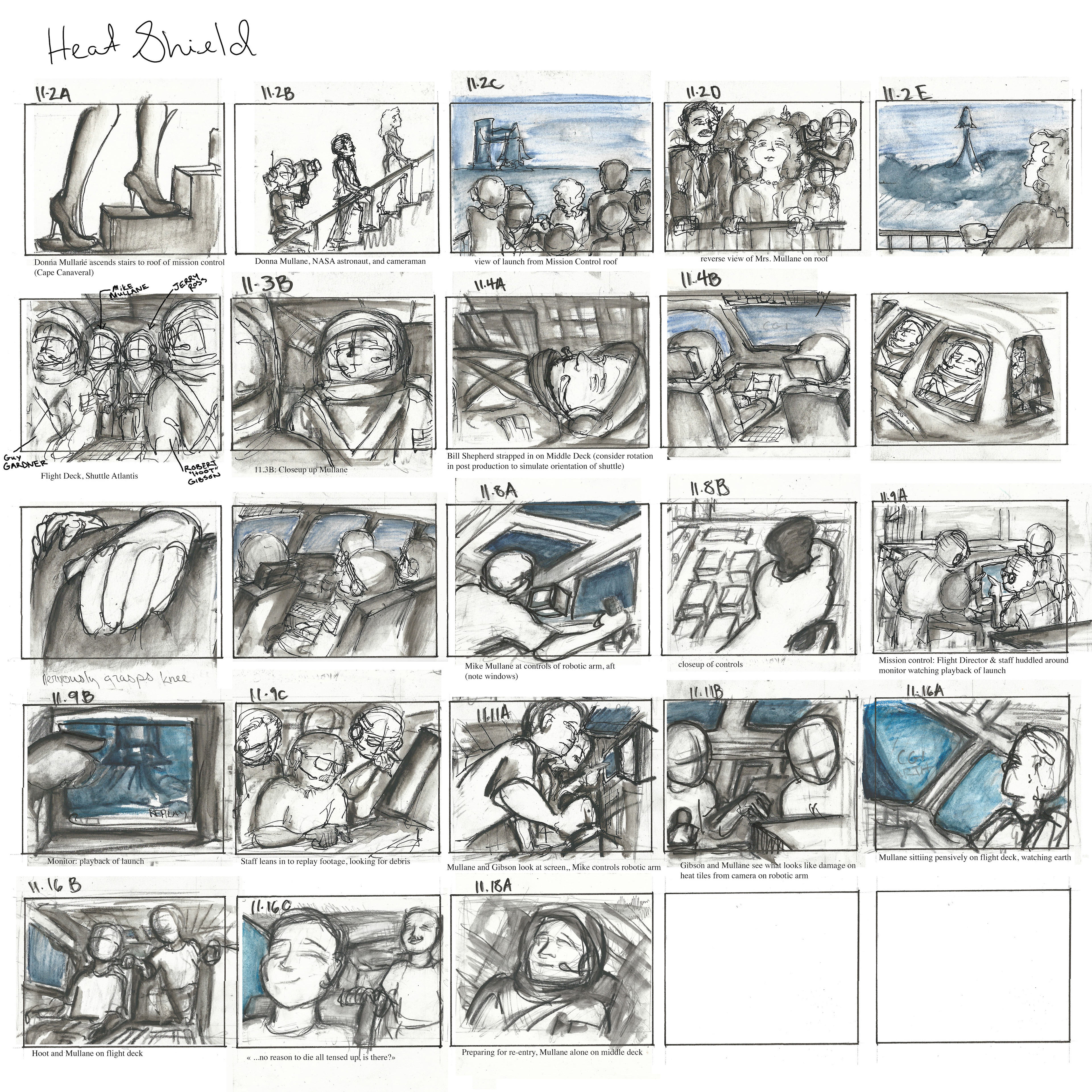 Storyboard drawings for recreation scenes in television series, "Secret Space Escapes," produced by ITV America for Science Channel